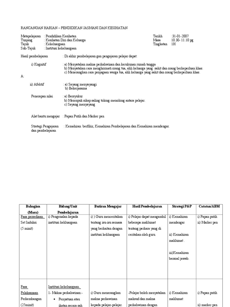 Rph Pendidikan Kesihatan Thn 4 Kekeluargaan