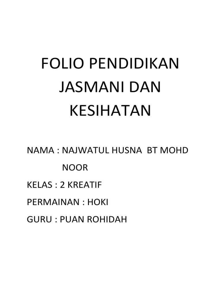 Doc Folio Pendidikan Jasmani Dan Kesihatan Tingkatan Anonymous Person Academia Edu