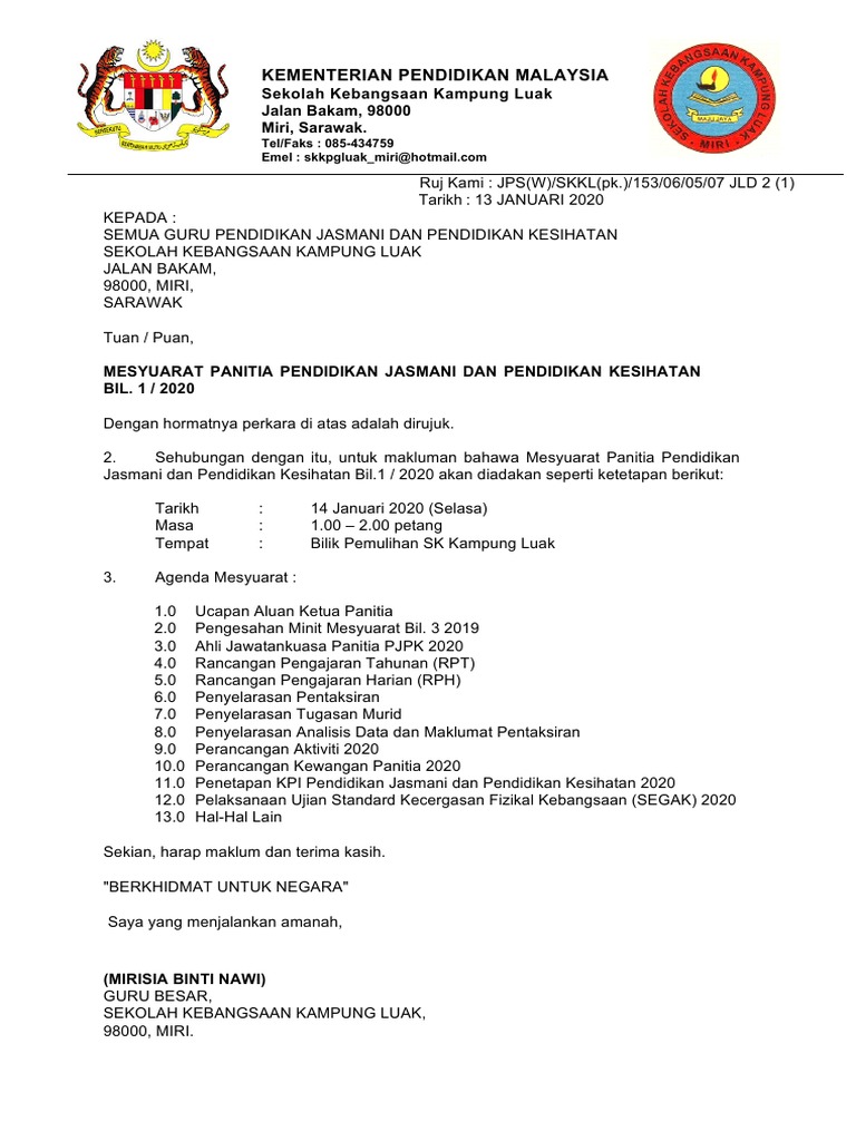 Surat Panggilan Mesyuarat Kali 1 Pdf